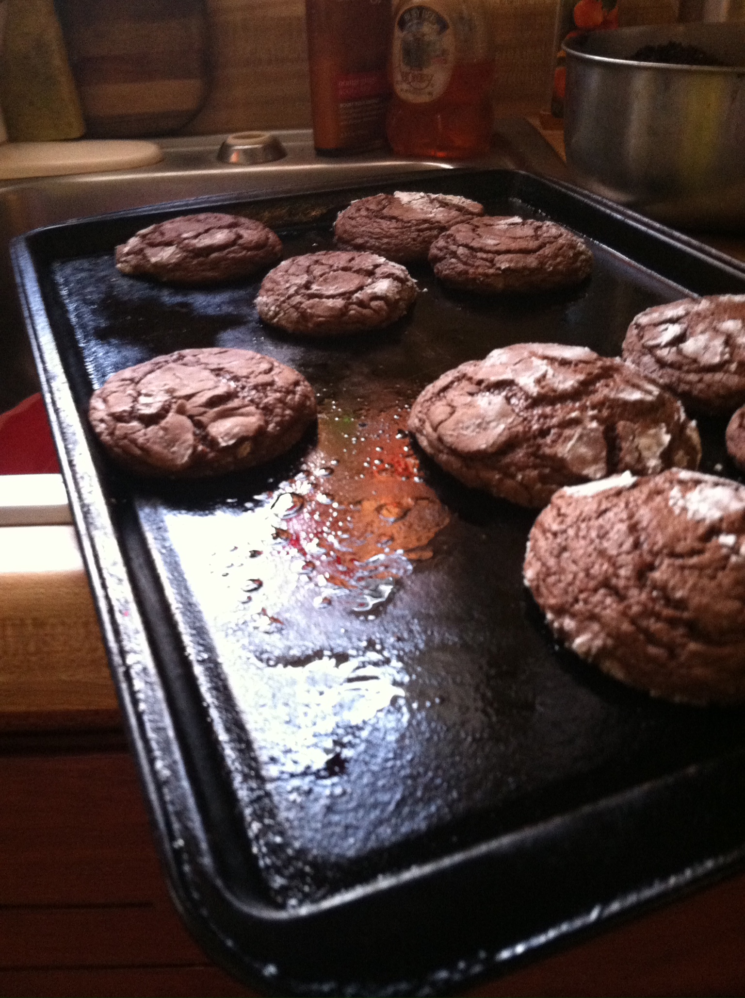 7. Place your balls of goodness on the sheets, nicely spaced because they grow, and bake for about 10-12 minutes. WATCH them. LEARN from me. DON’T WANDER FAR. You want nice gooey, chewy cookies. Not hockey pucks.
