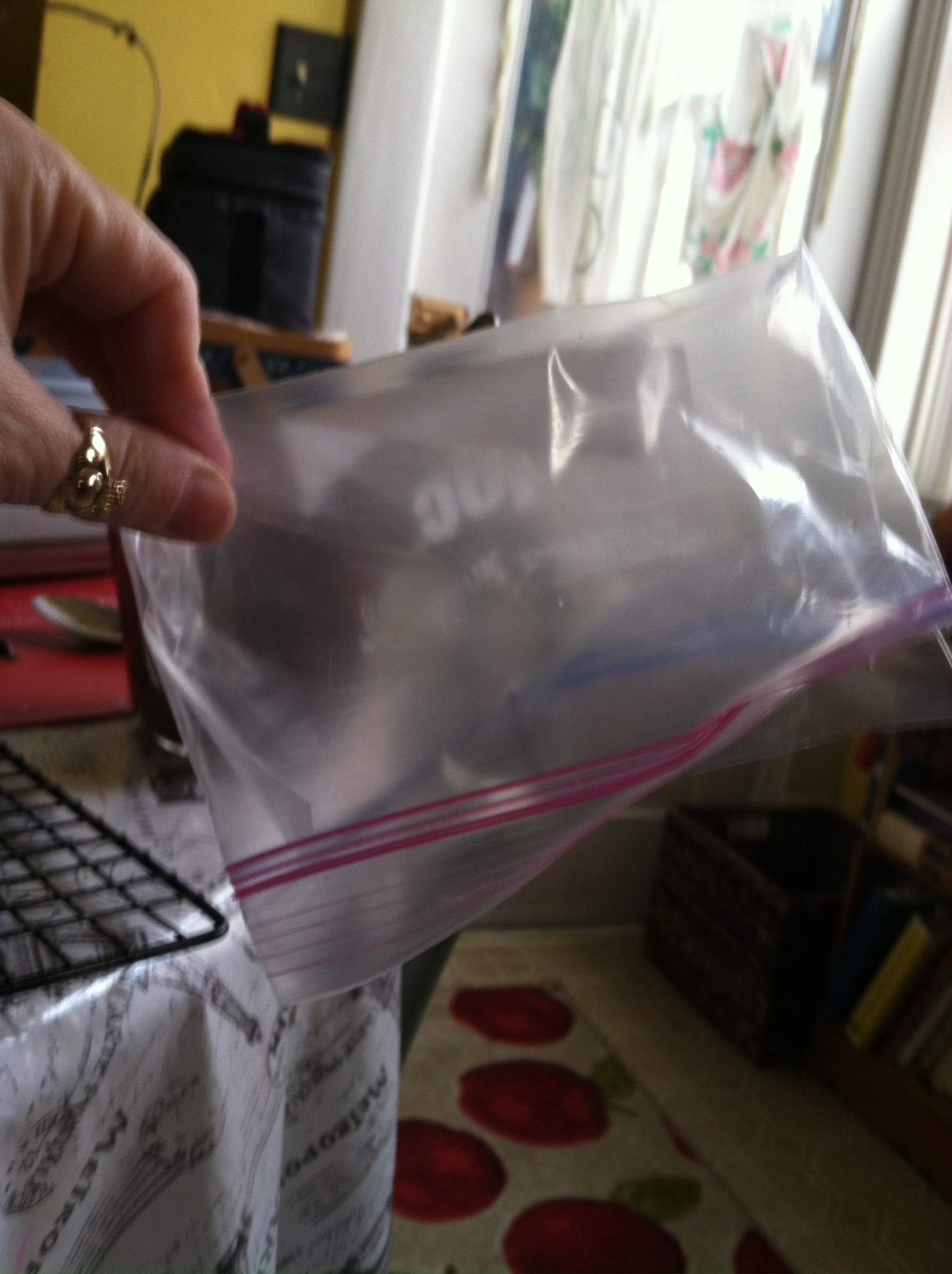 11. Spoon chocolate into a bag that has been folded down (almost in half because this is messy.)