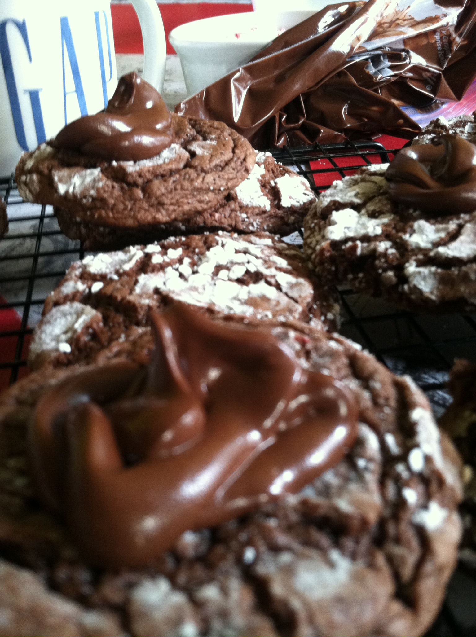 13. Get all Julia Child with yourself and squirt that chocolate in nice little piles on top of cookies. Marvel at the piles of chocolate, just so sweet and chocolately. (By the way, you can just spoon the stuff on top, but this squirting-through-the-bag thing? It’s FUN.)