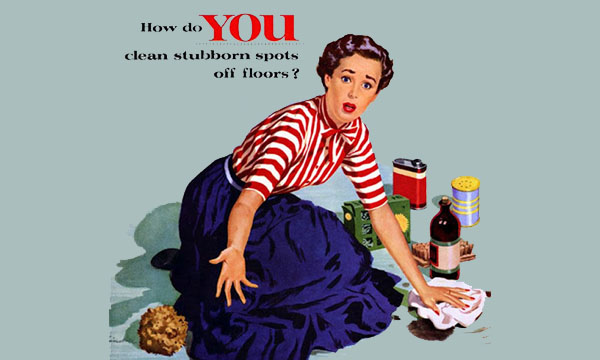 4. Husband eventually stops cleaning and wanders away to watch football (self-medication) and Momsie goes in for second shift of cocoa removal.
