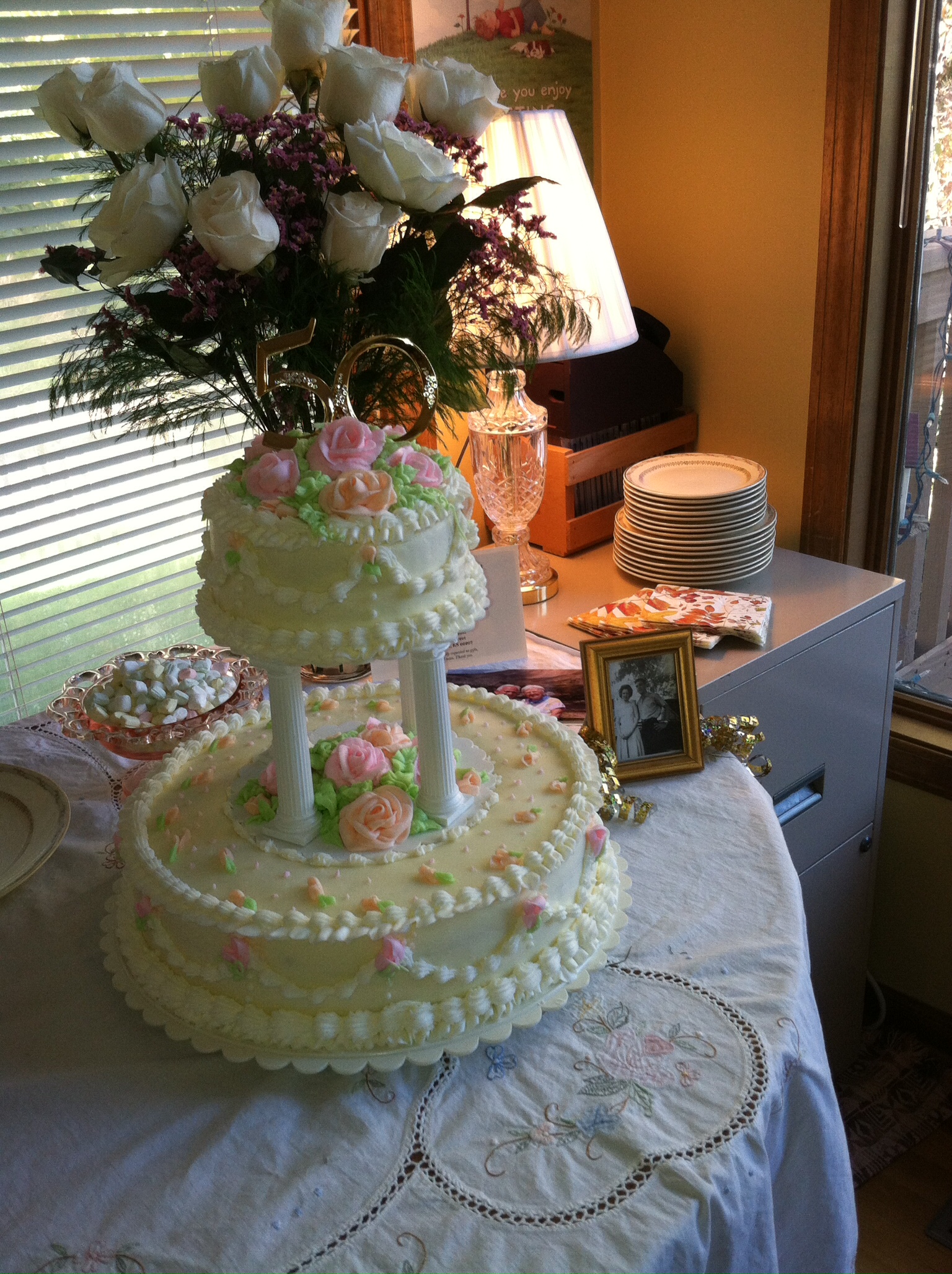 (And might I just add:  50 years.  50 YEARS.  What lunacy is this?  People actually STAY married for 50 years? Miracles do happen.  🙂 )