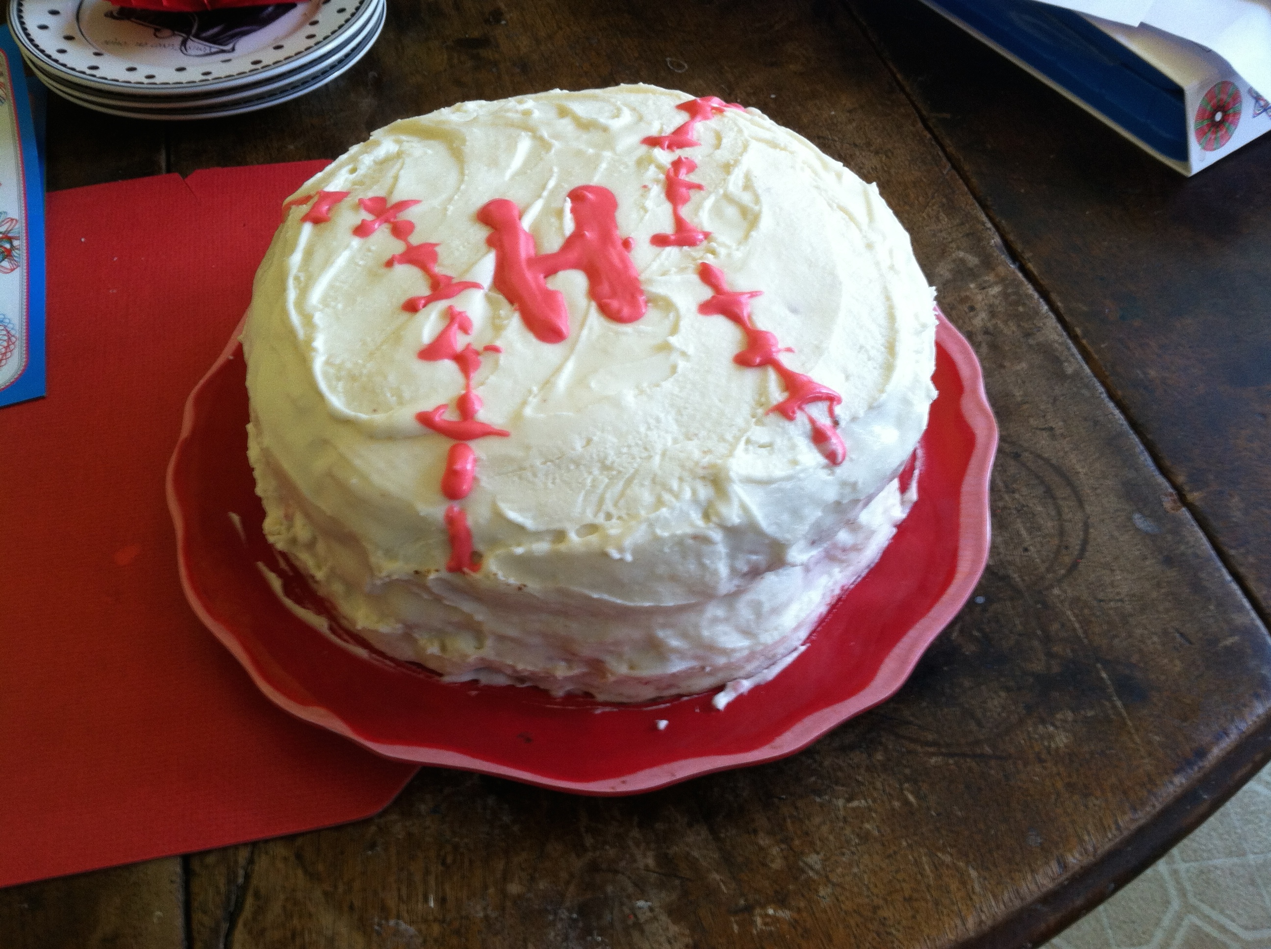 And yes, I know it’s pink. And it’s for Red, and he’s a boy. And it kinda looks like a pink slug trail, albeit more tasty.