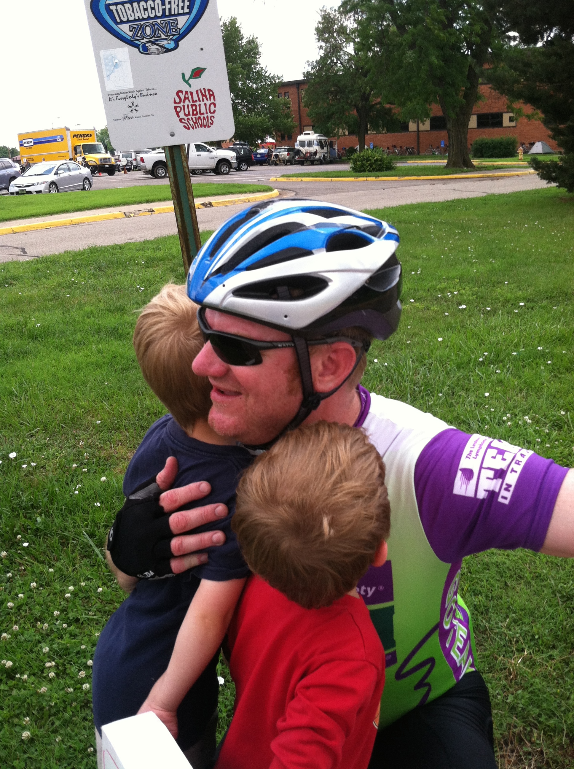I am totally proud of the hubster. I have to admit, I was kinda worried about him. I had all sorts of prayer warriors following his progress and lifting things up to God for him. We prayed about weather, sleep, tires, and his gluteus maximus. And yes, that does mean I had people praying about his bottom. Mainly, about chafing. How did that prayer sound, I wonder?