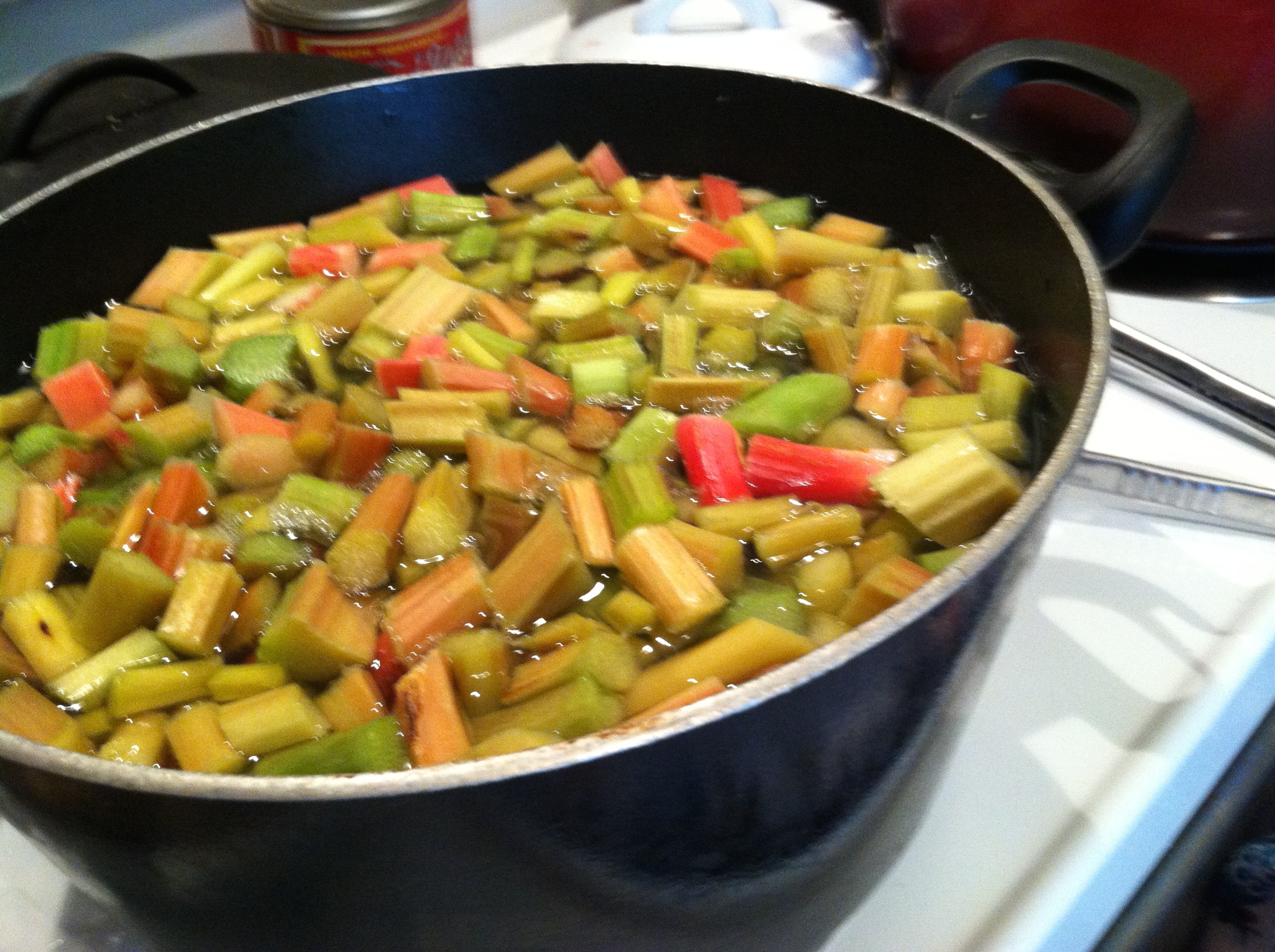 I had acquired a large bag of rhubarb from a friend and I had all these glorious plans: Pie! Maybe some jam! Perhaps a cobbler!