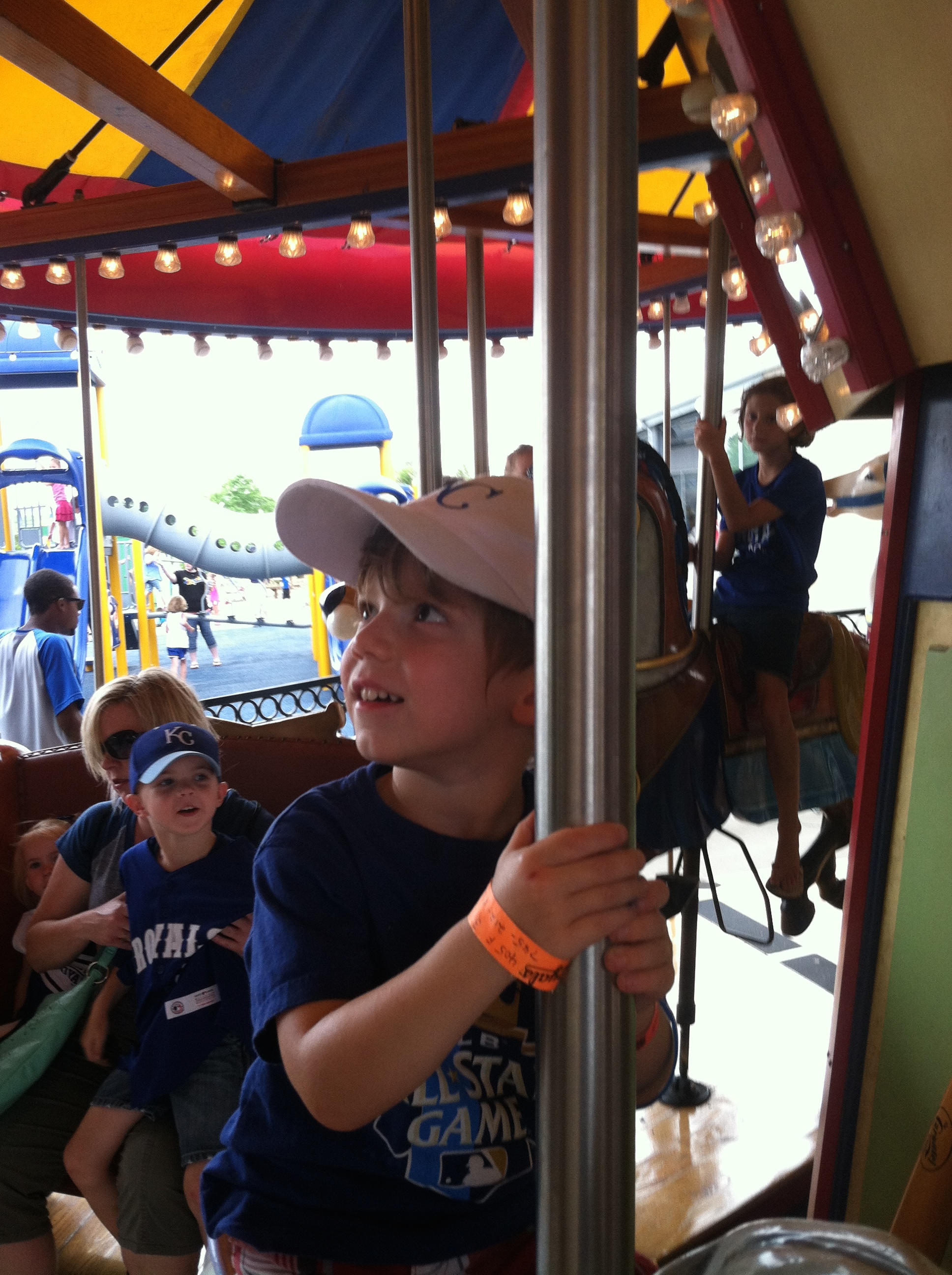3. Riding a carousel at the Royals game tends to make Red rather thinky. After the ride was over, he looked up at me and said, “I wanna ride it again. But a different horse this time. So we can go farther.” Poor dear. Physics and all.