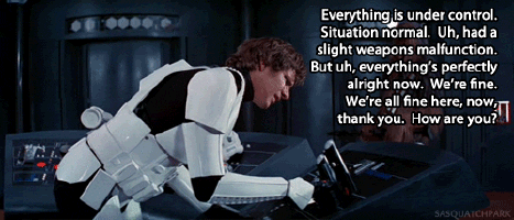 The other reason I love that scene is that I kinda feel like Han did in that controller room all the time. Sorta, erm, on the edge a bit and also: TOTALLY FAKING IT ALL THE TIME.
