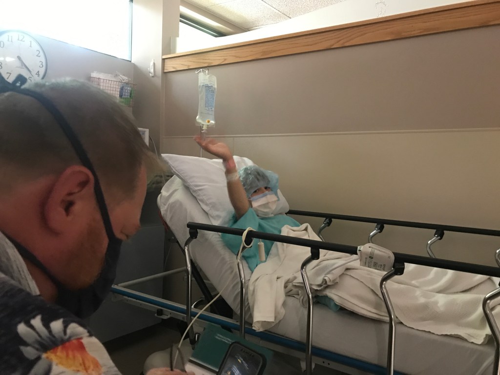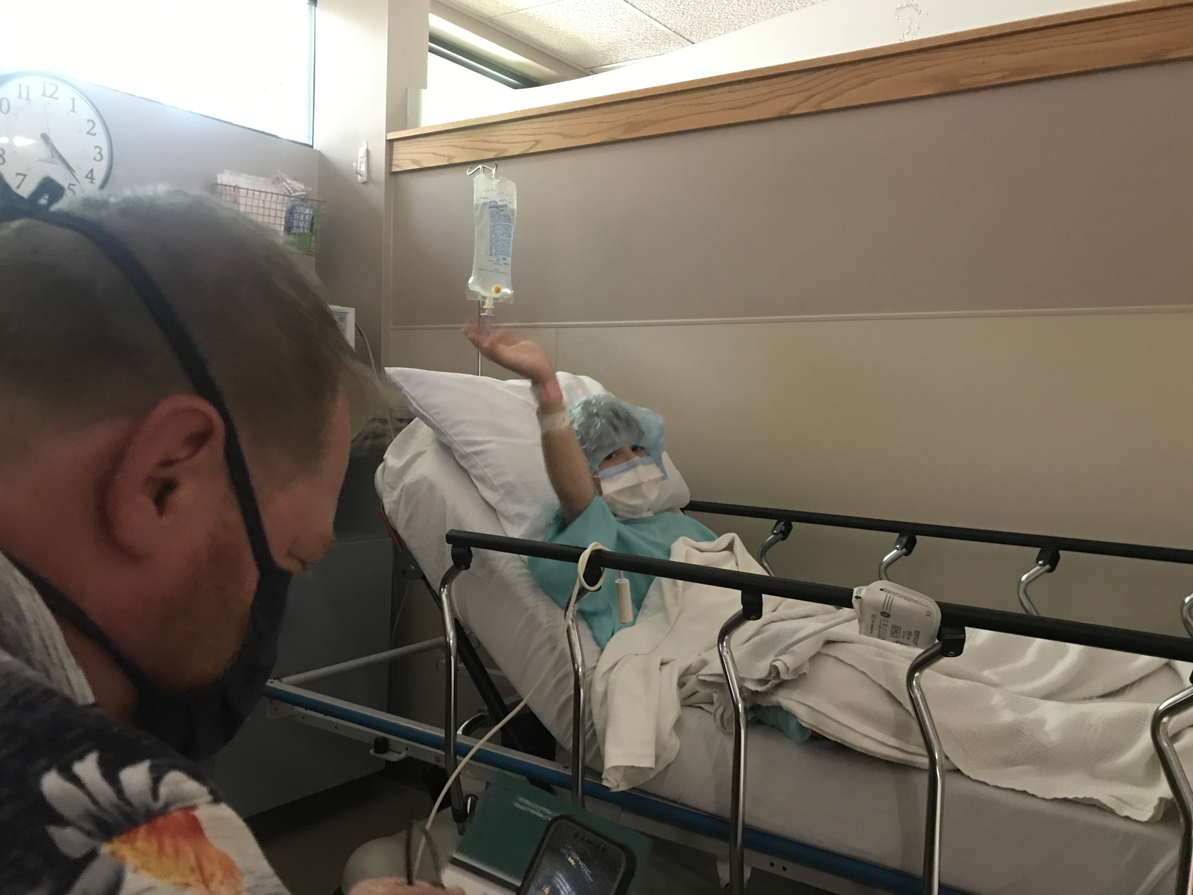5. In June my son Charlie had an appendectomy. He was brave and in this picture he is kinda blitzed on drugs. Brian is laughing at him but the mask hides it, which is a great side benefit of the masks. I spent the night with Charlie in the hospital on a very comfortable chair and I remember thinking, “I am so grateful I am here with my boy, and if I wasn’t sober that might not be the case.” Recovery really rings some bells when you have to take your kid in for an emergency appendectomy.