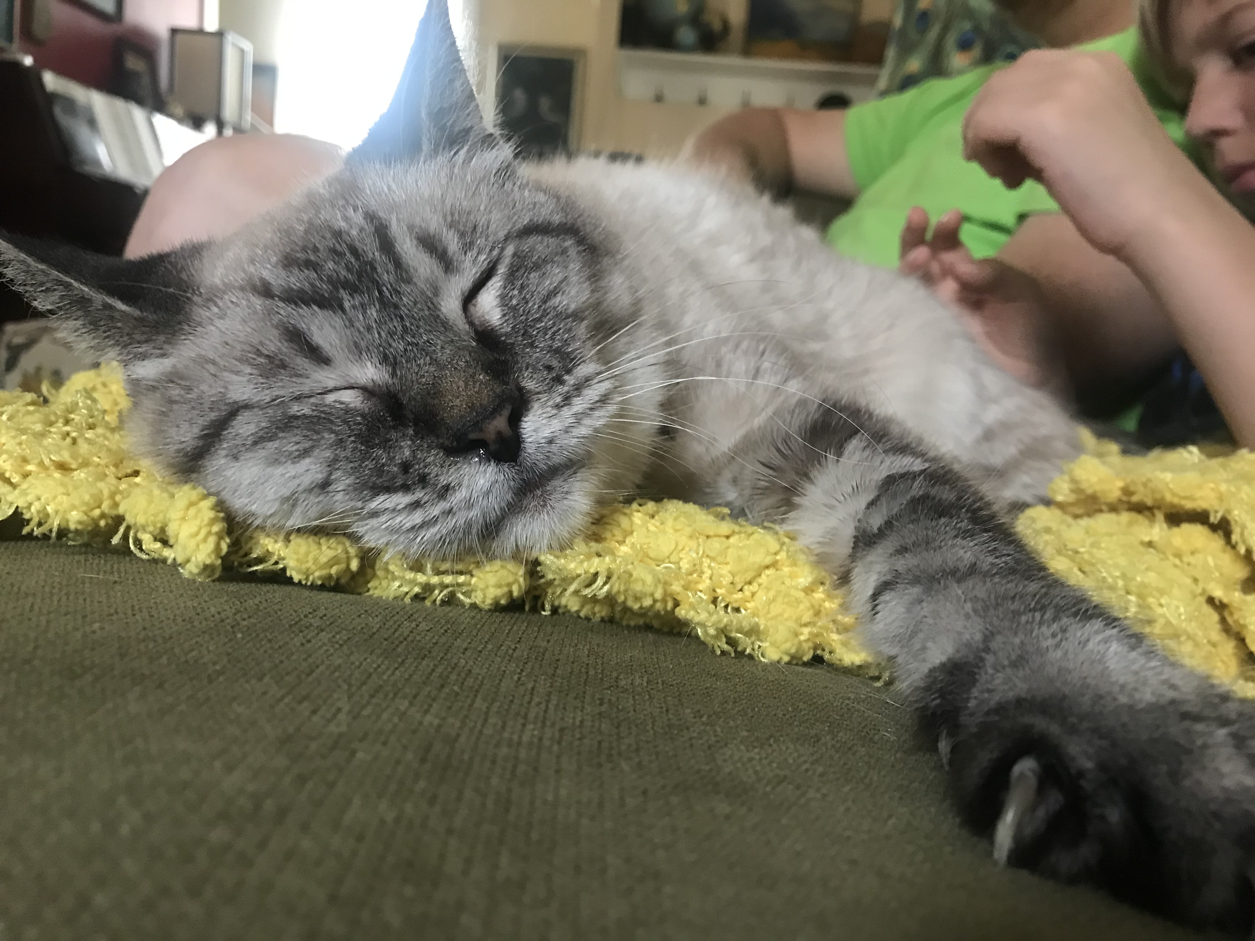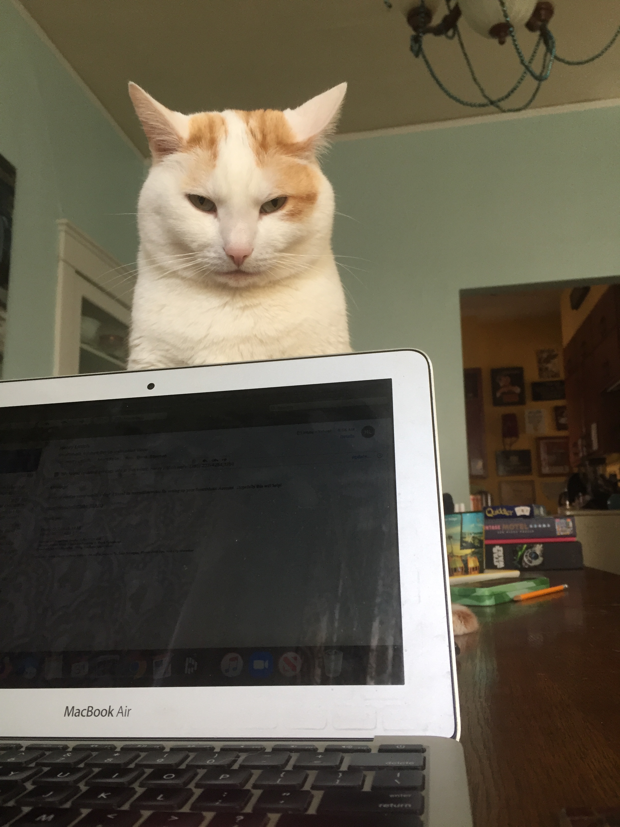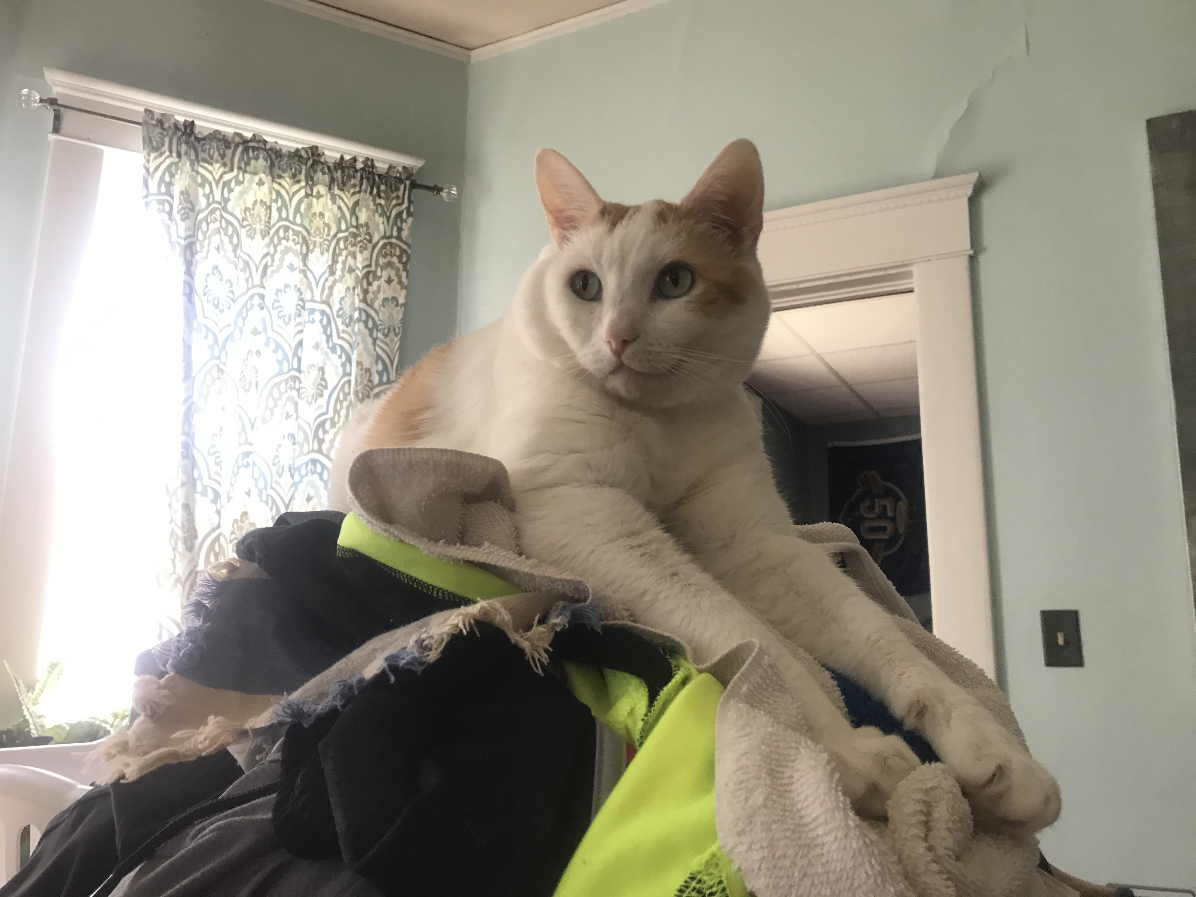 I mean, honestly, just look at him. He’s glorious. Here, he’s protecting my laundry from something on his right.