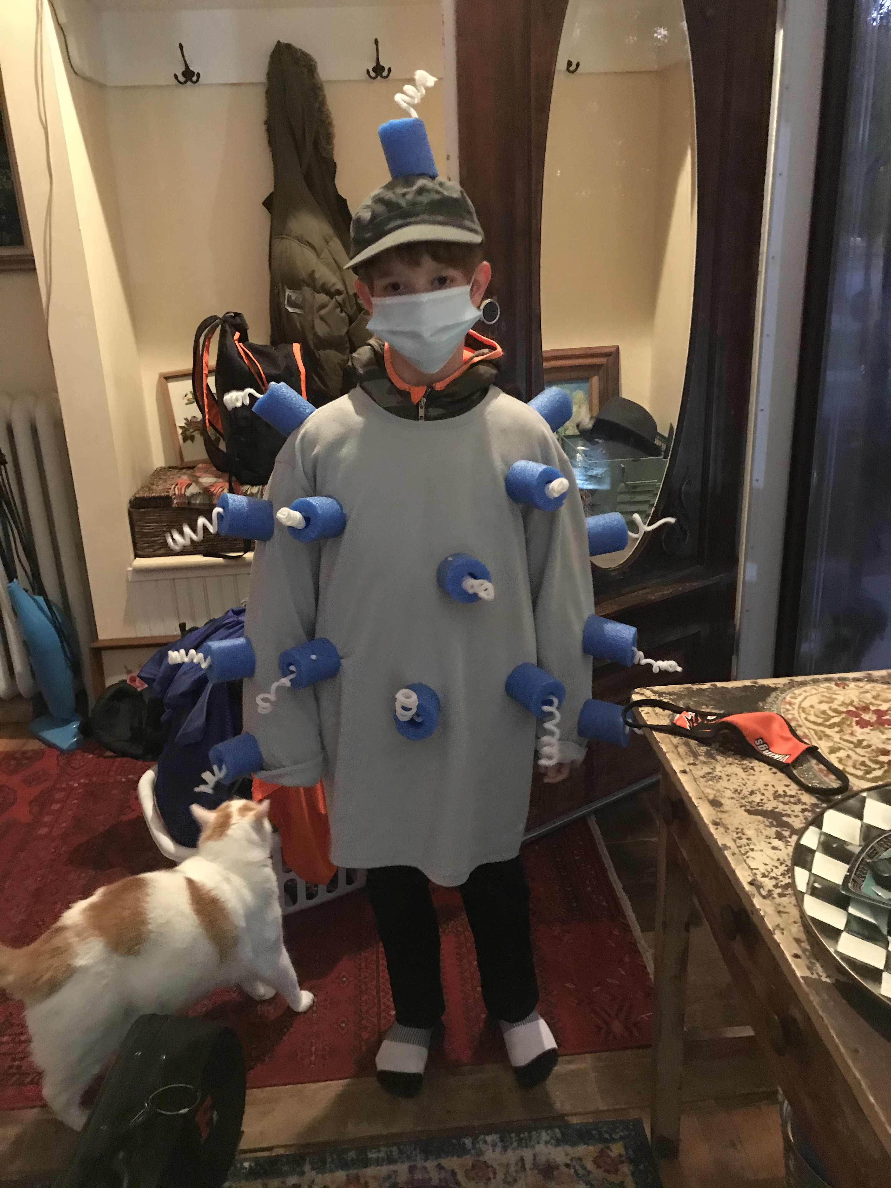 6. My son Henry wanted to be The Thing I Promised I Wouldn’t Talk About for Halloween. We worked on the costume together. He is pictured here along with our really messy entryway, and a customary basket of dirty laundry because who cleans anymore? The moral of the story here is to keep your humor. It will save us.